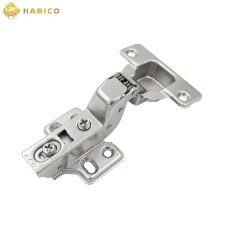 - Tên sản phẩm: Bản lề thép mạ Niken đế tích hợp giảm chấn – 105° – Lọt lòng (cong nhiều)