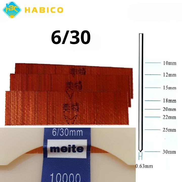 Đinh chỉ 6/30 Meite (đinh đồng 6/30mm) là loại đinh chỉ thẳng kích thước 6/30mm, chuyên dùng với máy bắn đinh chỉ trong thi công và sản xuất. Sản phẩm giúp liên kết chắc chắn, phù hợp các công việc yêu cầu độ bền và tính thẩm mỹ cao.